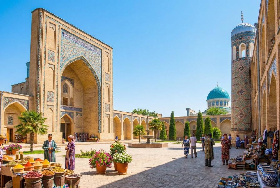 Otelimizde alacağımız kahvaltının ardından, bilginlerin, orduların, dinlerin ve kültürlerin birleştiği İpekyolu’nun İncisi Semerkant gezimize başlıyoruz. İlk durağımız, Konigil köyüne doğru olacaktır. Yüzyıllar boyunca sadece kağıt imalatı ile ilgili hizmet veren bu köyde kâğıt üretim sürecini hep birlikte gözlemleyerek üretimini deneyimleme fırsatı bulacağız. Atölye görevlisinden ve rehberimizden dut ağacı kabuklarından başlayarak nasıl kâğıt haline getirildiğini detaylarıyla izledikten ve bilgi aldıktan sonra tarih boyunca hem bir askeri deha hem de acımasız bir fetihçi olarak anılan ve Timur İmparatorluğu’nun kurucusu Timurlenk'in (Timur-i Leng) istirahatgâhının bulunduğu UNESCO Kültür Mirası Listesinde yer alan Gür Emir Türbesi’ne gidiyoruz. Emir’in Mezarı anlamını taşıyan ve Timur’un sağlığında, torunu Muhammed sultan için yaptırdığı türbe sonrasında aile mezarlığı olarak kullanılmaya devam edilmiştir. Timurlu dönemi ve İslami mimari ile tasarlanmış olan Türbenin iç mekânı mavi ve altın mozaiklerle bezeli olup tavanlarda ayrıntılı kalem ve çini süslemeleri kullanılmıştır. Rehberimizin anlatımlarını dinledikten sonra, ticaret, tarih ve kültür eğitim merkezi olarak bilinen ve Farsça da kumlu yer anlamına gelen Medreselerin bulunduğu Registan Meydanı’na gidiyoruz. Uluğ bey, Şirdar ve Tilla Kari Medreseleri’nin bulunduğu meydanda bilgilendirmeleri dinliyoruz. Sadece Semerkant için değil tüm Orta Asya’nın dikkatlerini ve kültürünü bağrında toplayan meydandaki tarihi atmosferin içerisinde vereceğimiz serbest zamanın ardından bir sonraki durağımız Siyob Pazarı’na gidiyor, hediyeliklerden alabilmek ve öğle yemeğini serbestçe değerlendirebilmek için mola veriyoruz. Molamızın ardından, Özbekistan’ın ve Orta Asya’nın en büyük Camii’ni görmeye gidiyoruz. Timur’un Hindistan Seferi’nden sonra kutlama amacıyla Bibi Hanım adına yaptırdığı bu cami ihtişamıyla en etkileyici mimariler arasında yer almaktadır. Bibi Hanım Cami, zengin çini süslemeler, hat sanatı ve taş oymacılığı ile dekore edilmiştir. Mavi ve turkuaz çiniler, caminin iç ve dış cephelerinde geniş bir şekilde kullanılmış, Arapça hat yazıları, özellikle Kuran'dan alıntılar, yapının çeşitli bölümlerinde yer almaktadır. Turistlerin ve aynı zamanda araştırmacıların mutlak uğrak yeri olan tarihi yapı, depremlere ve büyük hasarlara uğramış olsa da yeniden restore edilerek ziyaretçileri ağırlamaya devam etmektedir. Burada rehberimizin anlatımlarından sonra, yaşayan Kral anlamına gelen Şah-ı Zinde (Yaşayan Kral) Türbeleri Kompleksi’ni gezmeye gidiyoruz. Önemli şahsiyet ve alimlerinin mezarlarının bulunduğu kompleksi de görerek, Timur döneminde Bilim adamı, astronom ve yönetici olarak görev alan Uluğ Beyin 1424-1429 yılları arasında inşa ettirdiği Rasathane hakkında bilgilenmeye ve gezmeye gidiyoruz. Devasa bir sekstant (açısal ölçüm aleti) bulunan yapıda anlatımları dinleyerek Akşam Yemeklerimizi almak üzere Yerel Restoranımıza gidiyoruz. Konuklarımızı karşılamak üzere müzikler ve danslar eşliğinde bir seremoni ile getirilen 6 metrelik şişlerdeki şaşlık kebabının ve envayi çeşit yerel lezzetlerin tadına varıyoruz. Keyifli bir gecenin ardından sonra otelimize dönüyoruz.
