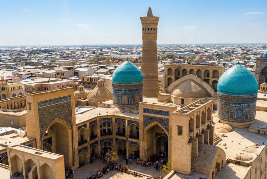 Otelimizde alacağımız kahvaltının ardından, ünlü Afrosiyob Hızlı tren istasyonuna transfer oluyor ve Hızlı Tren ile UNESCO Dünya Mirası listesinde yer alan ve İpekyolu’nun önemli duraklarından biri olan Buhara’ya gidiyoruz. Yaklaşık 1,5 saatlik bir Hızlı Tren seyahatinden sonra, tarihi MÖ 6. Yüzyıla uzanan ve Büyük İskender'in Asya seferi sırasında önemli bir ticari kent haline gelen, İslam Medeniyetine önemli katkılarda bulunan, el yapımı halıları, ipek kumaşları ve nakışlarıyla ünlü Buhara kentini gezmeye başlıyoruz. Türk ve Orta Doğu Halk hikayelerinde çokça yer alan ve neredeyse ünü tüm dünyaya yayılan, heykeli Buhara’da da bulunan adalet, zekâ ve akıl oyunlarıyla bilinen, ders veren fıkraları ve anlatılarıyla ünlü Nasreddin Hoca Heykeli’ni görerek başlayacağımız programımıza geçmişi 5. Yüzyıla dayanan Ark Kalesi’ni gezerek devam ediyoruz. İçerisinde Hükümet Binaları’nın, Medrese ve Camilerin, yaşam alanlarının bulunduğu kale hakkında rehberimizin anlatımlarını dinledikten sonra, serbest zaman vereceğimiz Taki Zargaron ve Taki Telpakfuruşon Pazarı’na gidiyoruz. Yeniden buluşmamızın devamında adeta bir kültür resitali, sosyal hayatı şekillendiren hankalar ve medreseler kompleksi olarak da anılan Leb-i Havuz Külliyesi, Çar Minar Medresesi, Magoki Attari Cami, Bahaddin Nakşibendi ve validelerinin türbelerinin ziyaretlerini yaparak Akşam yemeğimizi alıyoruz. Tam gün Buhara keşfimizi tamamlayarak otelimize geçiyoruz. Konaklama Buhara’daki otelimizde.